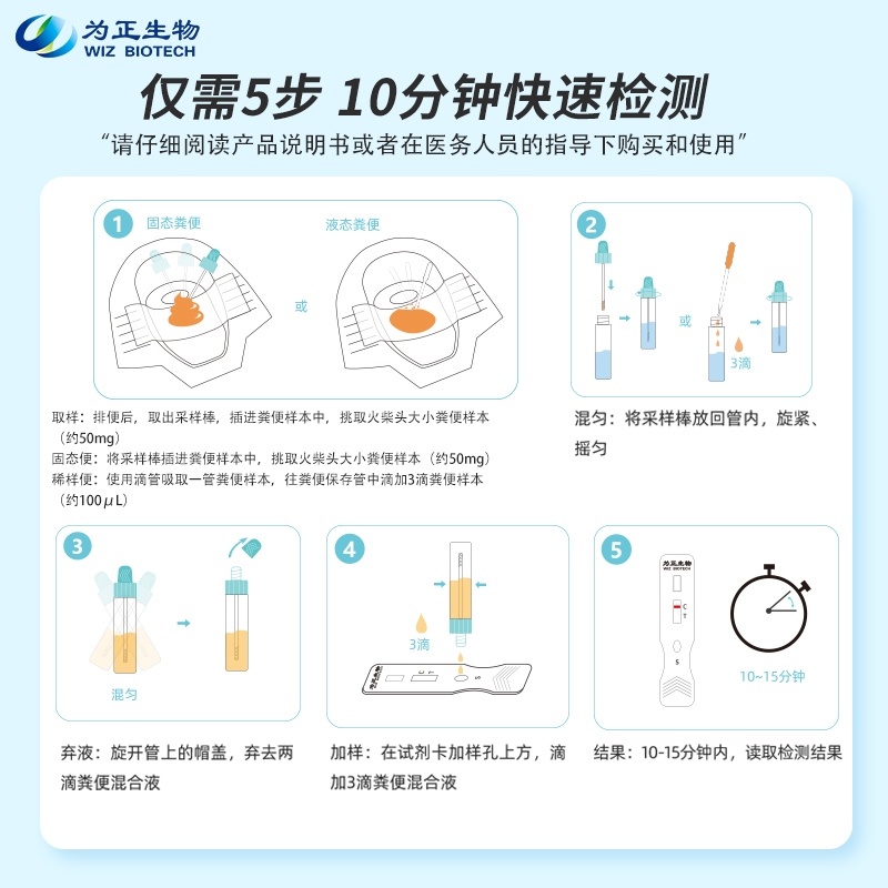 为正生物大便潜血试纸,居家自测方便快捷,轻松筛查消化道异常。操作简单无创无痛,结果清晰易判读,无需前往医院,居家健康常备,守护全家肠胃安心,老少皆宜更放心。