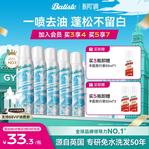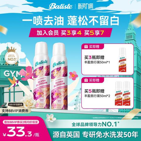 batiste碧缇丝免洗干发喷雾 【售价】:¥79.00 【券后】:¥64.00 【优惠券】:¥15 推荐理由:【叠加消费卷+淘金币低只47.5元2瓶、平均一瓶才23.75元超划算】无需水洗,60秒告别油头扁塌,喷雾细腻不留白屑,瞬间吸附油脂还原发丝蓬松空气感。 👉复制这条信息打开【手机淘宝APP】即可领券购买:/