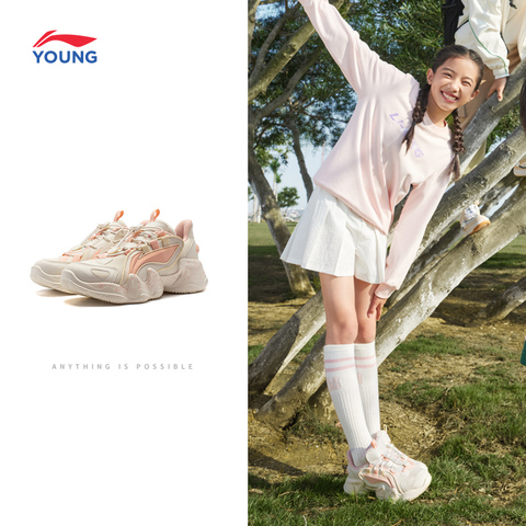 【凑单到手119.67(官方立减42+优惠券87+88vip7.45+淘金币5.56+消费券)购物金95折后113.68】2026新款李宁儿童运动鞋,春夏款设计,轻便透气,适合女童日常穿搭。中大童尺码可选,经典老爹鞋造型,时尚又舒适!