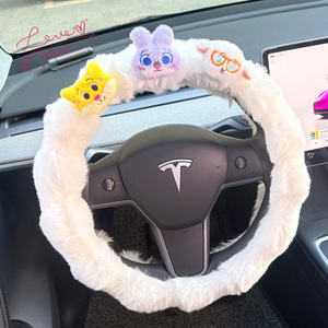 方向盘保护套可爱星星人冬季毛绒
